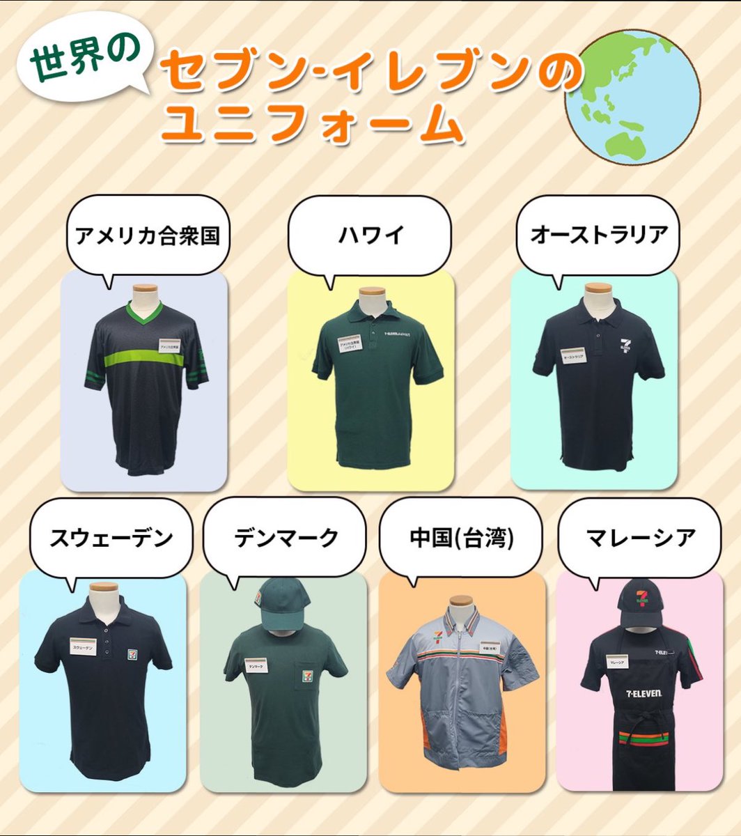 これは、7月11日の“セブン-イレブンの日”に合わせ、同日、公式Xに「セブン-イレブンは19の国と地域に展開しており、それぞれでユニフォームが異なっています」と、世界のユニフォームをまとめた画像を投稿したもの。