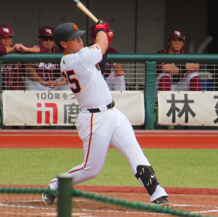 左肘靱帯(じんたい)損傷で離脱中の巨人岡本和真内野手(29)が実戦復帰7試合目に臨んだ。