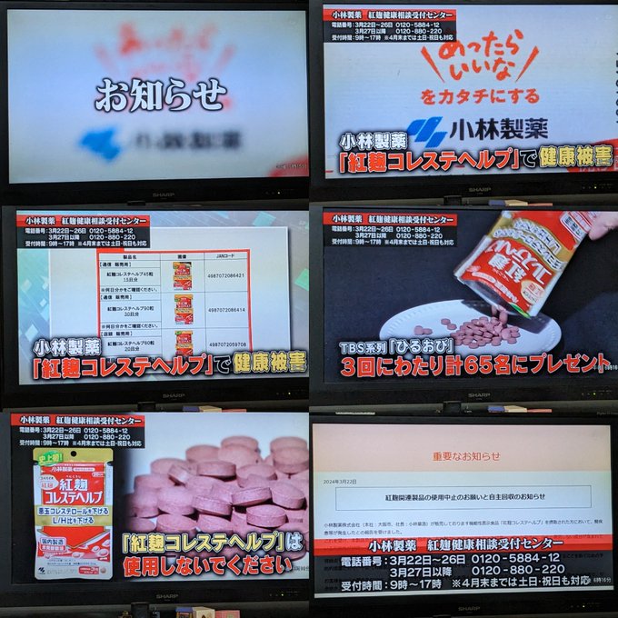 【悲報】TBSひるおび65名に小林製薬「紅麹コレステヘルプ」をプレゼント企画としてバラ撒いていたことが判明※小林製薬が知った後だった模様