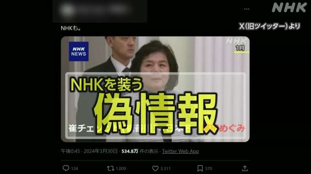 北朝鮮に拉致された被害者、横田めぐみさんが北朝鮮の外相と同一人物であるとNHKのニュースで伝えられたように見せた偽情報が旧ツイッターのXで広がっています。報道機関を装った偽情報は能登半島地震などでも相次いでいて注意が必要です。