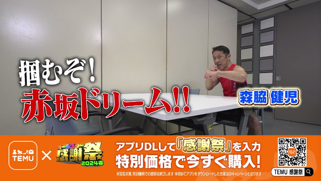一部で問題視されている中国の新興格安ECアプリとコラボしたCMが放送されたからだ。物議を醸したのが、中国のECアプリ「Temu(テム、ティームー)」とコラボしたCMが放送されたことだった。「感謝祭」の放送中にCMコーナーがあり、タレントの森脇健児がTemuを宣伝した。番組中にCMに切り替わらず、番組内のCMコーナーとして宣伝する、いわゆるインフォマーシャルだ。