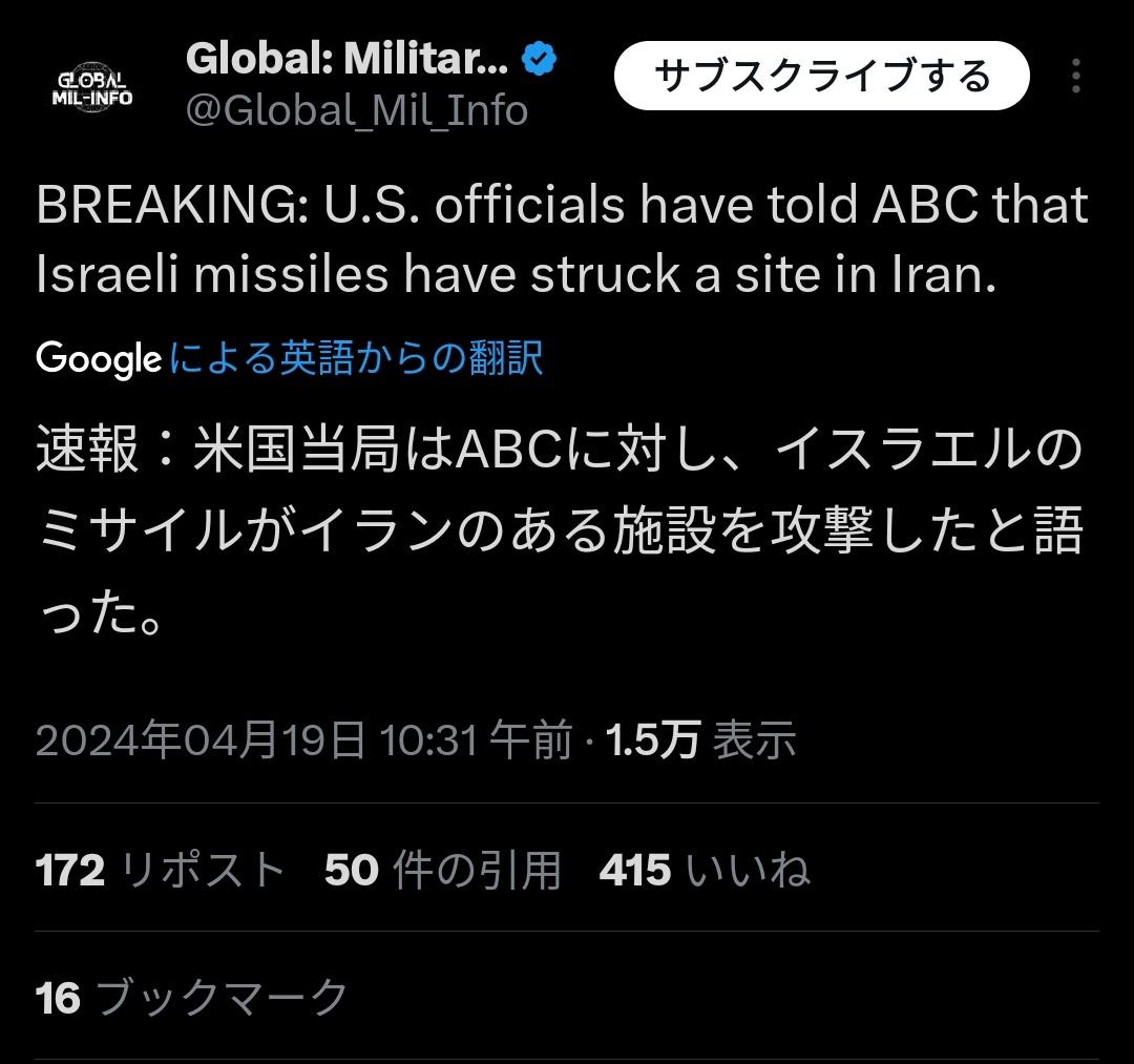 【号外】イスラエル、正式にイランへの攻撃開始 核施設にミサイル命中との情報も