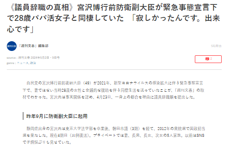 《議員辞職の真相》宮沢博行前防衛副大臣が緊急事態宣言下で28歳パパ活女子と同棲していた 「寂しかったんです。出来心です」(文春オンライン) – Yahoo!ニュース