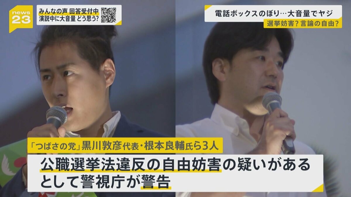捜査関係者によりますと、「つばさの党」の黒川代表ら3人は選挙期間中に大音量で他の陣営の街頭演説を妨害したり、他の陣営の選挙カーを追尾して交通を妨げたりするなどしていたということです。