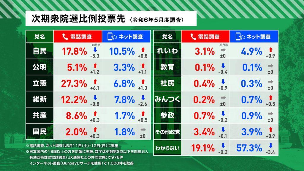 立憲民主党、支持率で自民党を超える。政権交代へ