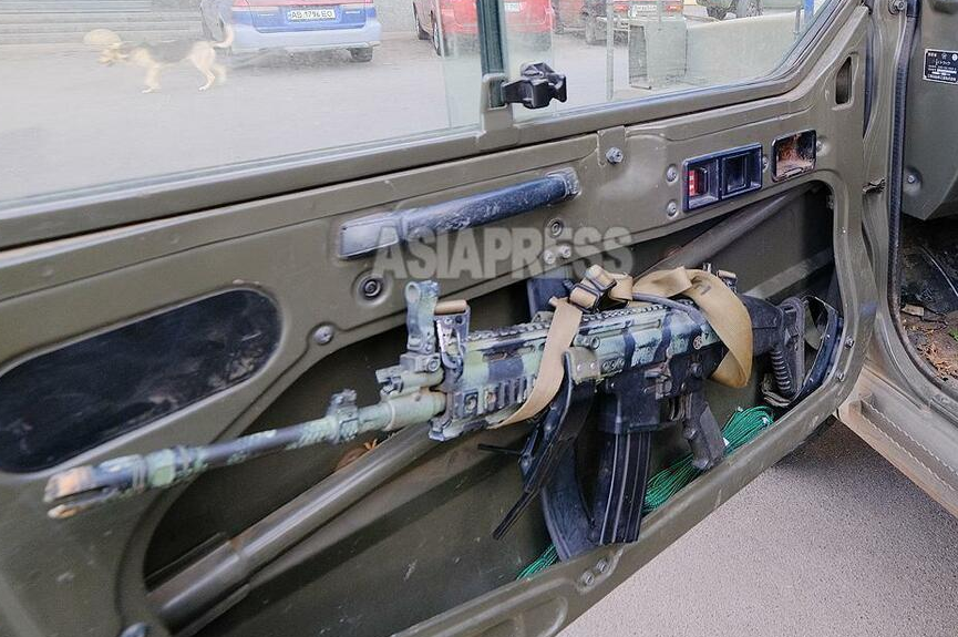 日本からウクライナに供与された自衛隊車両の1/2トントラックが、東部ドネツク州の最前線で人員の移送や弾薬を運ぶのに使われていることが、現場兵士の証言で分かった。話を聞いたのは兵士2人。いずれもウクライナ国防省指揮下の外国人義勇兵部隊に所属。(ウクライナ東部ドネツク州/玉本英子・アジアプレス)