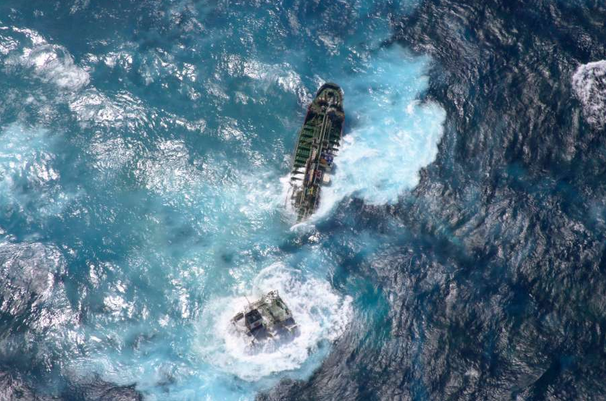 中央部付近から二つに折れたとみられ、10管は巡視船とヘリコプターを派遣し、積み荷の化学物質シクロヘキサン流出の有無などを確認している。