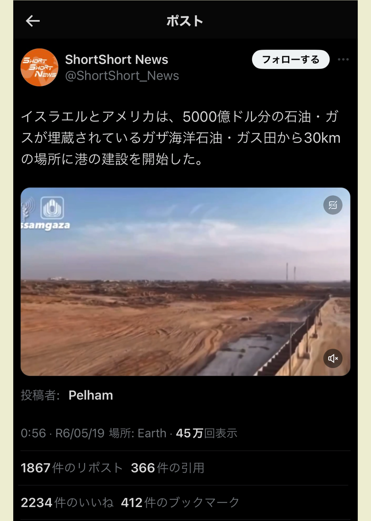 【速報】イスラエル&アメリカ、ガザの海洋石油とガス(5000億ドル)から30kmの場所に港を建設開始。ロシアですらやらねーぞ!