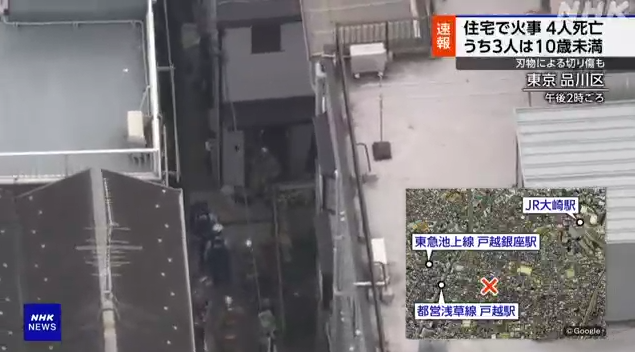 【速報】品川区の住宅の火事に急展開、男性は軽症、30代女性1人・子ども3人が死亡「ドアに鍵・刃物による切り傷」