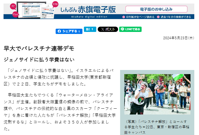 早大でパレスチナ連帯デモ「ジェノサイドに払う学費はない」 ん!?