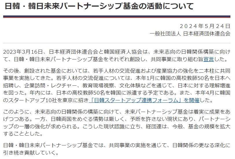 【速報】経団連が日帝強制徴用基金に2億円支払い「日本の高校教師50名を韓国に派遣して学ばせる」