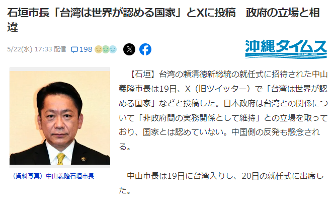 石垣市長「国と認めない政府方針を市長も踏襲しろと言うなら、政府が決めた辺野古移設もデニーは守れと言えば?」