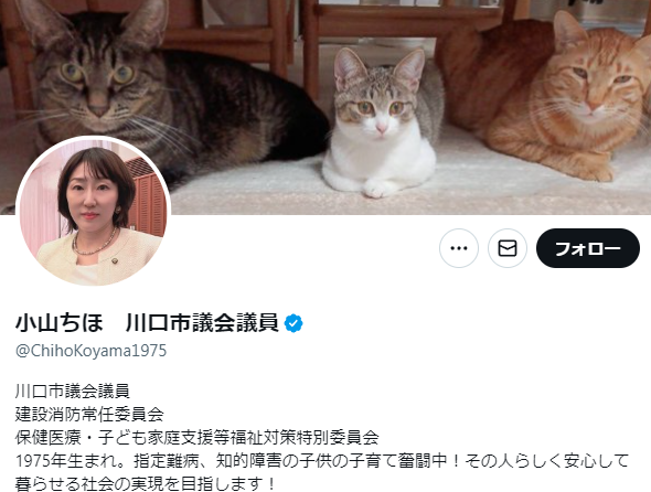 小山千帆・埼玉県川口市議(自身のXから)