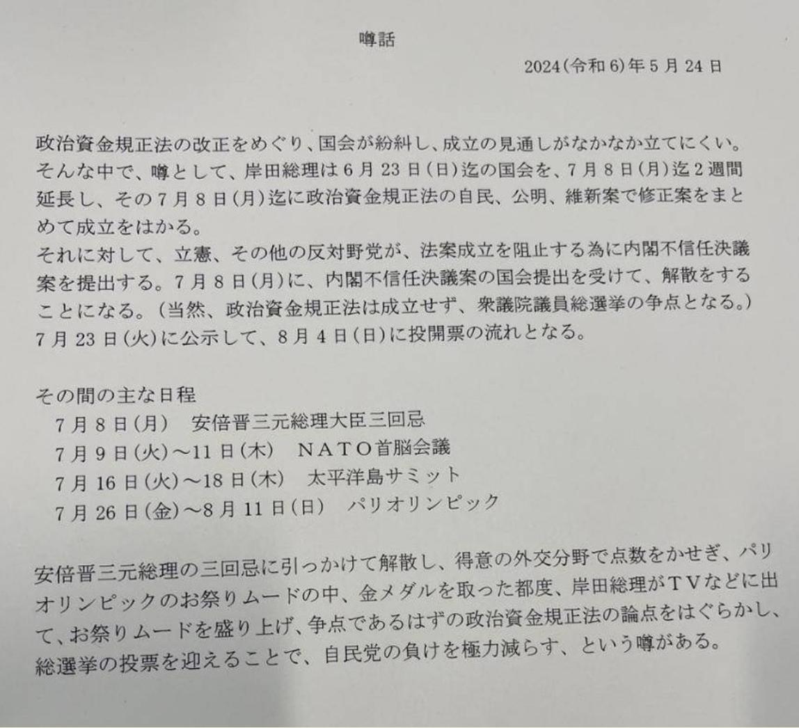 【画像】パヨ、また怪文書作成して騒ぐ 岸田政権、安倍晋三氏の三回忌をやろうとしている事を官僚がリーク