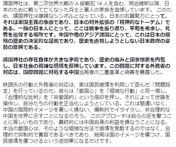 1: 名無し 2024/06/04(火) 23:00:39.93 ID:VJYDqfDM0 BE:271912485-2BP(1500)翻訳して読んでみて。中国にとっていかにブーメランになったかわかるから。