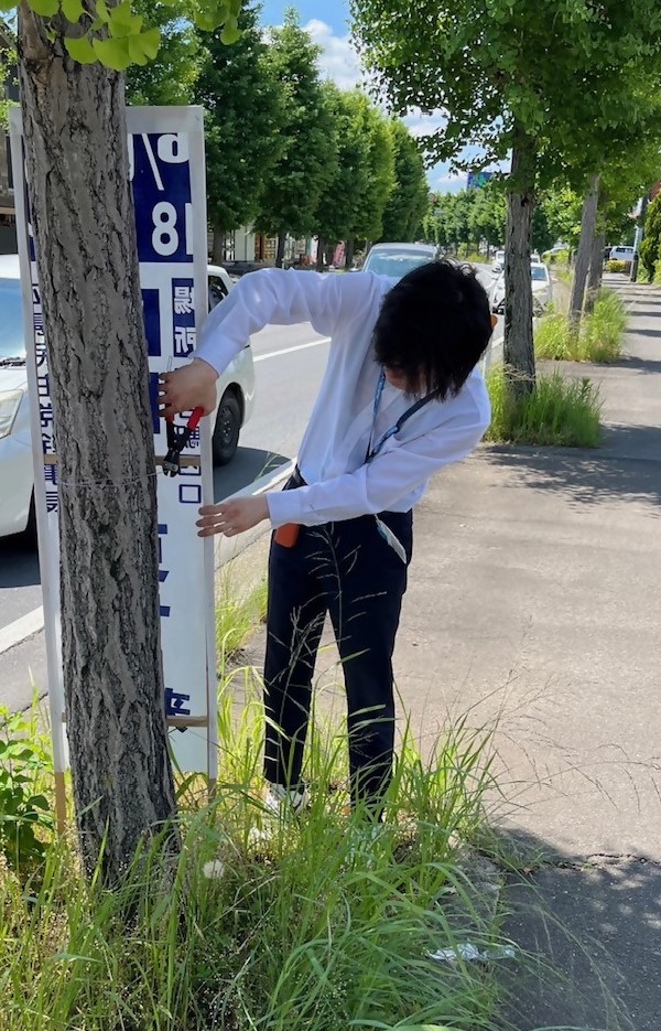 本日、都市整備部ではふれあい道路などの幹線道路に設置されている違法な立看板を、市内全域で一斉撤去しました。道路上の街路樹や電柱などに無許可で立て看板を設置することは違法ですので、絶対におやめください‼