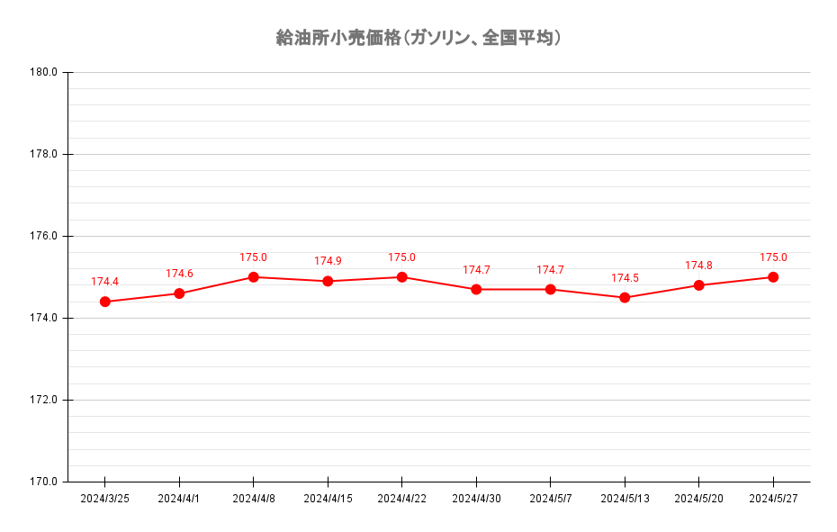 レギュラーガソリンの全国平均小売価格は、