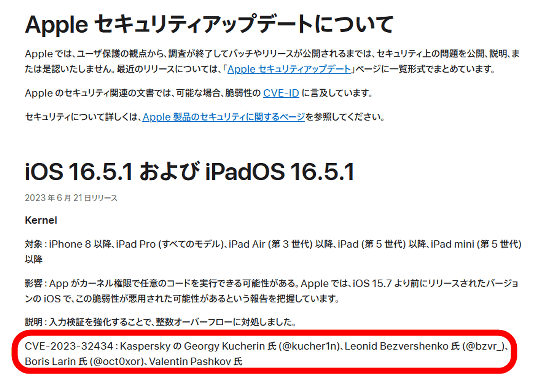 2023年にロシアに拠点を置くセキュリティ企業にKaspersky(カスペルスキー)がiPhoneの脆弱(ぜいじゃく)性「Operation Triangulation」を発見しました。AppleはKasperskyの報告を受けて脆弱性を修正しましたが、記事作成時点でも脆弱性発見に対する報奨金が支払われていないことが明らかになっています。