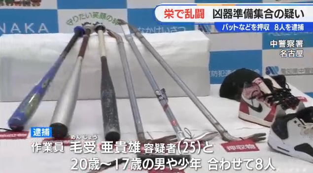 逮捕されたのは名古屋市中区の作業員、毛受亜貴雄(めんじょう・あきお)容疑者(25)と20歳から17歳の男や少年、合わせて8人です。