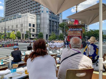 プレミアム観覧席は昨年導入され、酒類やかき氷などが提供される。同神社によると、野村宮司は「山鉾巡行は神事で、お酒を楽しみながら見るショーではない」と話しているという。