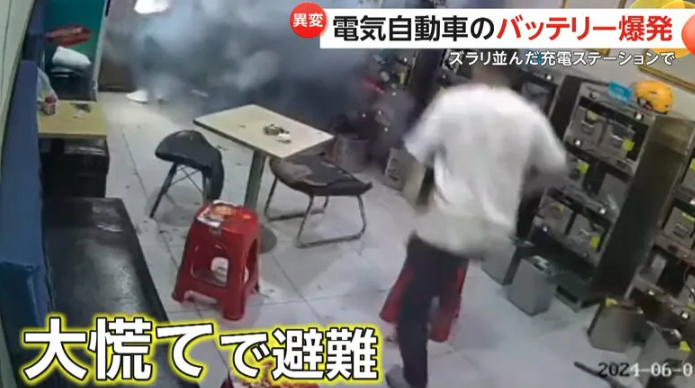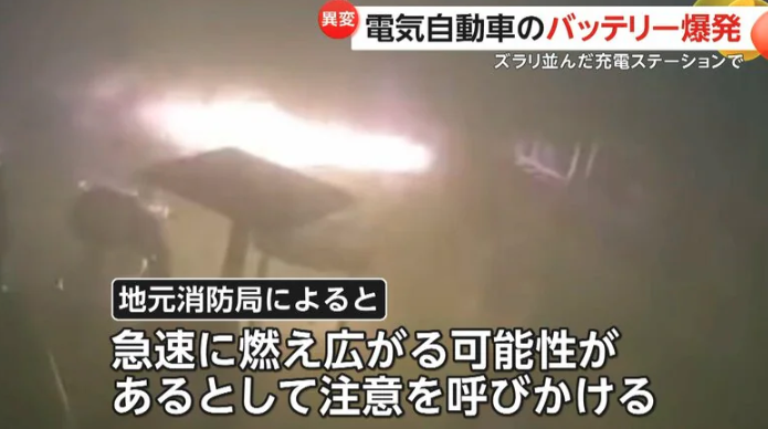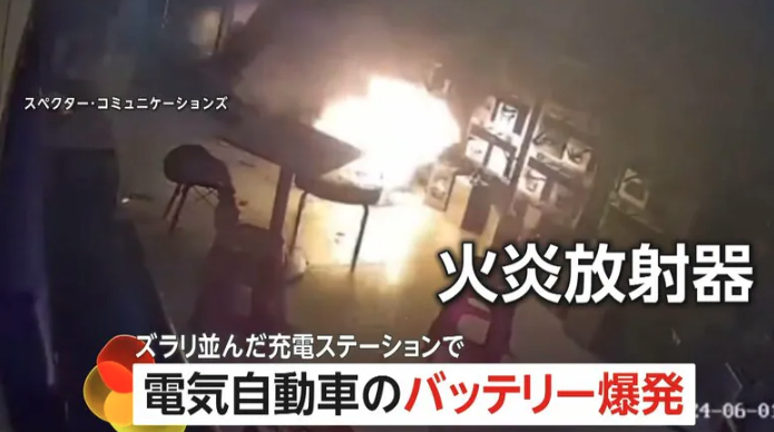 中国・広東省の充電ステーションで、電気自動車のバッテリーが突然爆発し、炎が火炎放射器のように噴き出す事故が発生した。