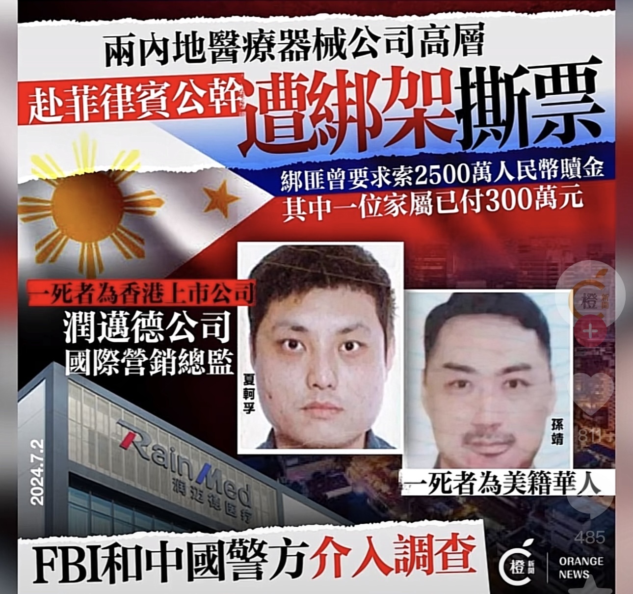 【速報】フィリピンで中国人駐在員2名が誘拐され6000万払うも殺害される。過去には警察官が中国人誘拐も [271912485]
