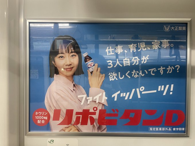 SNSで批判意見が上がっているのは、大正製薬「リポビタンD」の電車内広告。女性タレントのバージョンには「仕事、育児、家事。3人自分が欲しくないですか?」、男性タレントのバージョンには「時代が変わると疲れも変わりますからね」というコピーが書かれているものです。