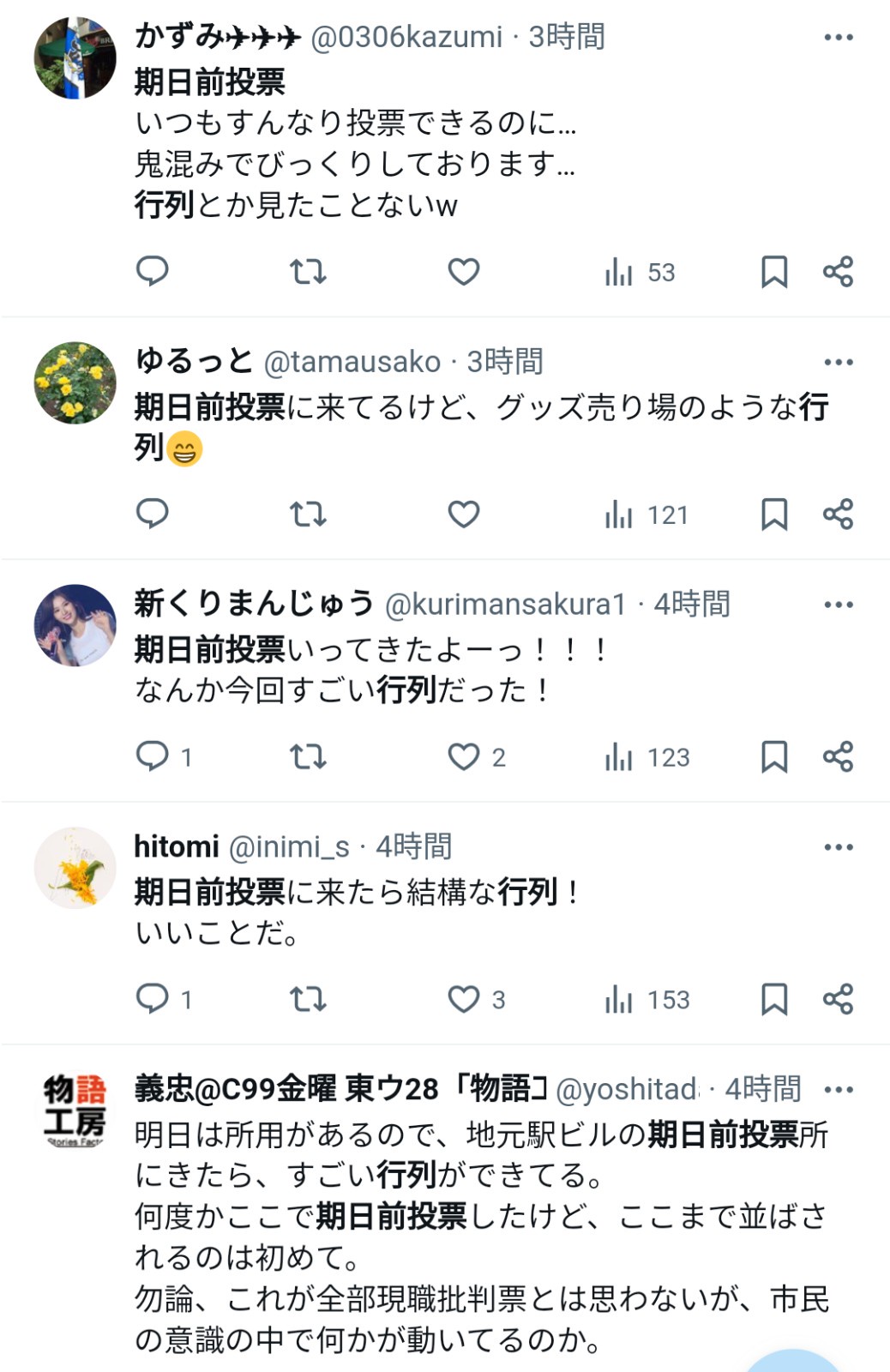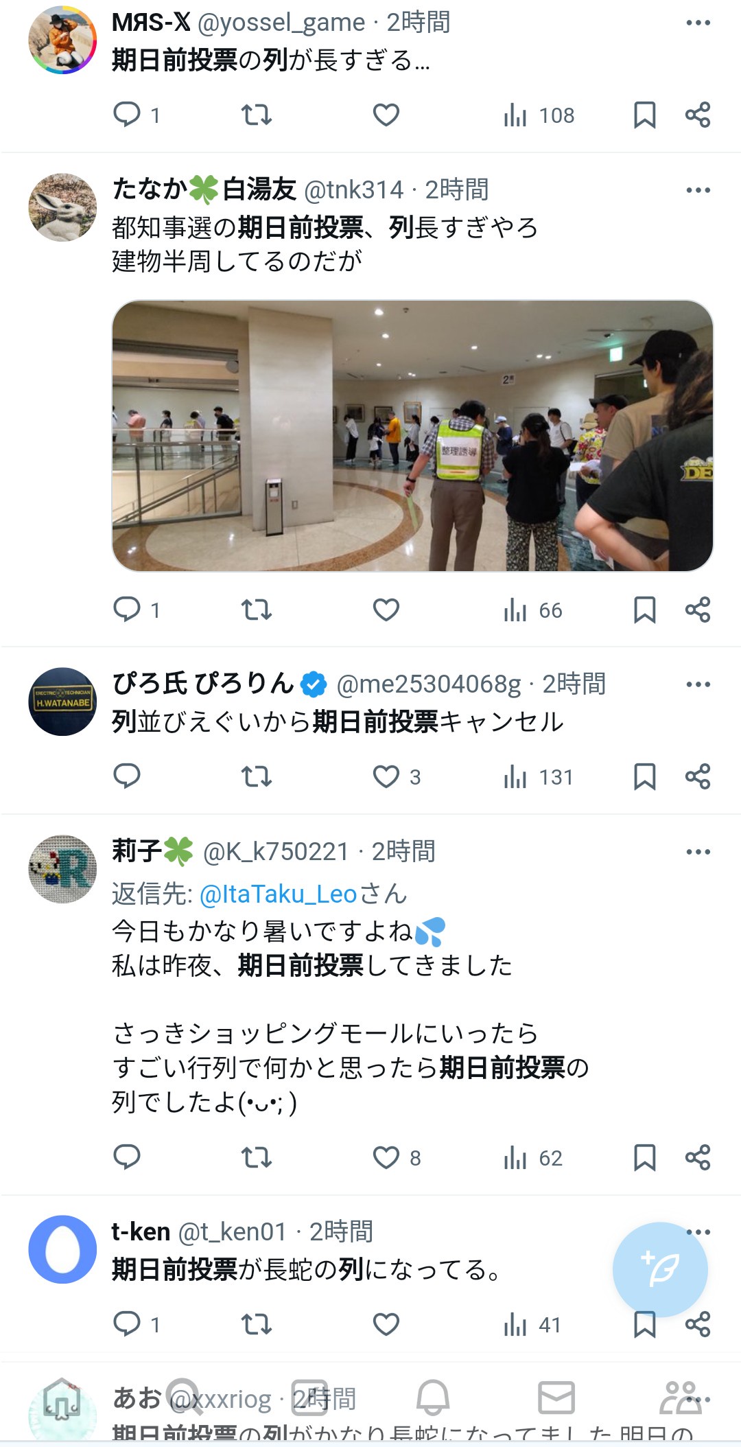 【画像】都知事選、期日前投票で物凄い行列ができてしまう