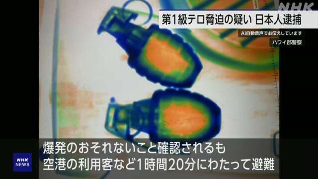 アメリカ ハワイ島の空港で手投げ弾を機内に持ち込もうとしたとして、日本人の容疑者が現地の警察に逮捕され、この影響で空港の利用客が一時、避難する事態になりました。