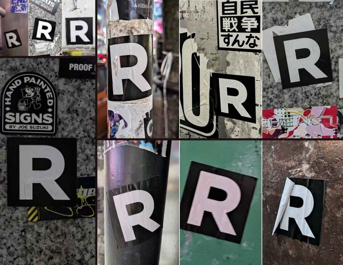 【東京汚染】悪のロケット団シール「R」、予想以上に東京の街中に存在※さらに蓮舫は『R』ではなく『L』だということも判明www