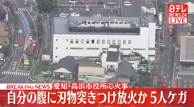 愛知県の高浜市役所で放火とみられる火事があり4人がけがをしています。