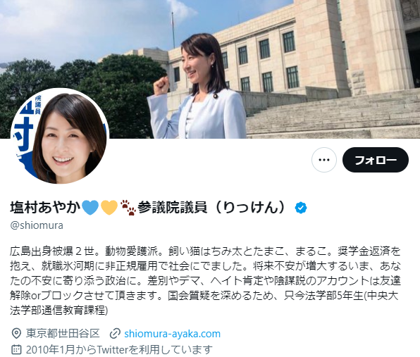 塩村あやか💙💛🐾参議院議員(りっけん)@shiomura