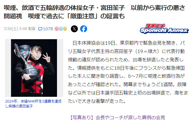 【擁護派、逝く】 飲酒喫煙でアウトの宮田笙子、以前からタバコで注意されていた模様