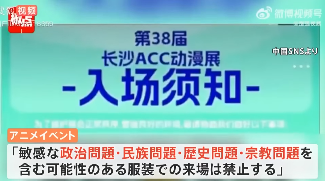 「それはでたらめよ!」これは中国のSNS「ウェイボ」に投稿されている、アニメイベントで撮影されたとされる映像です。人気アニメ「鬼滅の刃」のキャラクターに扮し、着物のような衣装を着た女性が「和服はダメだ」と警備員に入場を拒まれます。