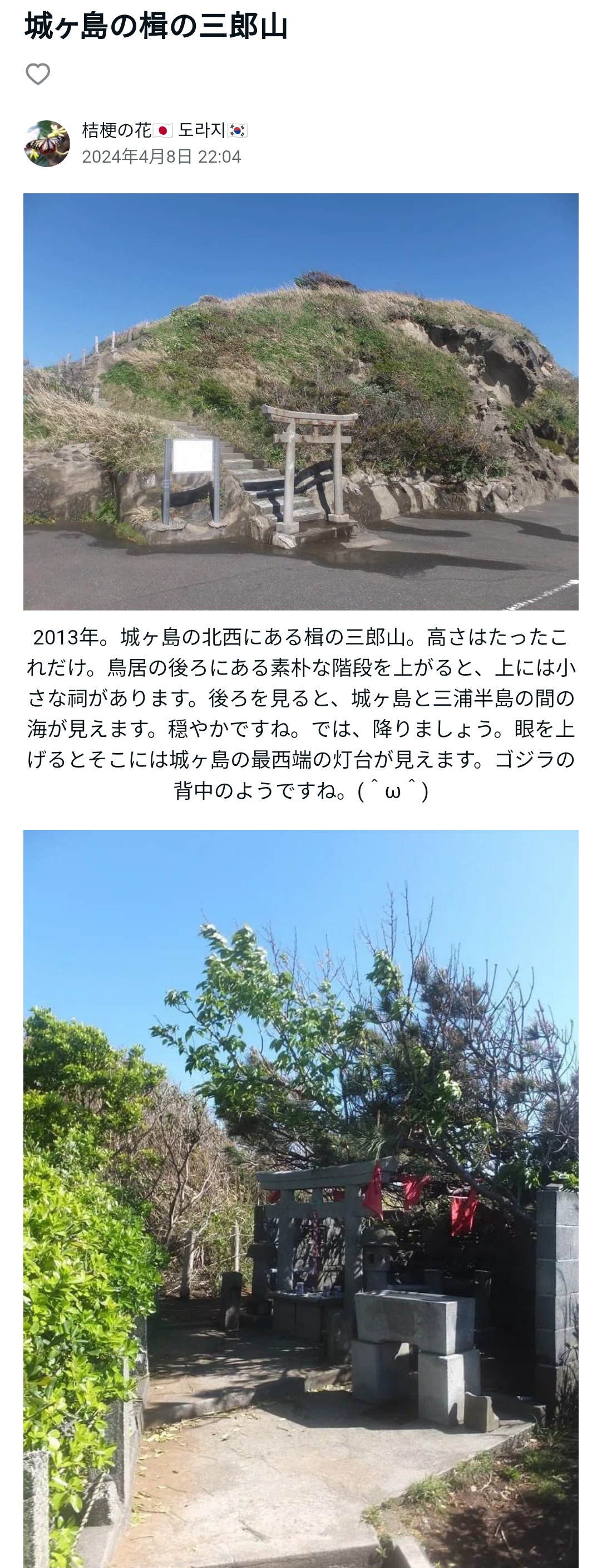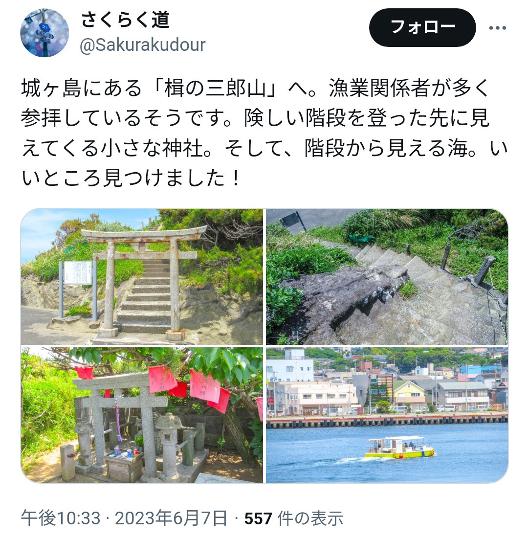城ヶ島のバス🚌の終点から西に見えてた『楫(かじ)の三郎山』が消えてた😭💧