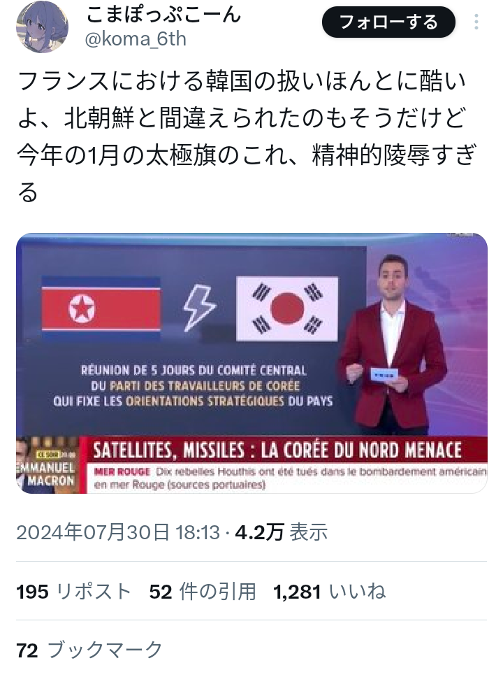 フランス「韓国🇰🇷の国旗?こんな感じかな」