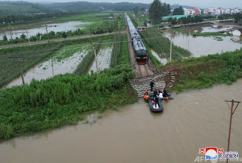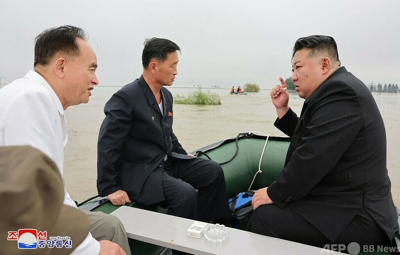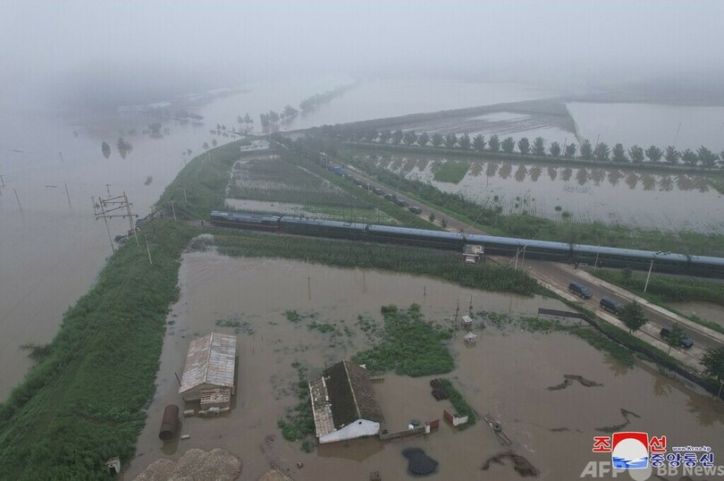 【7月31日 AFP】朝鮮中央通信(KCNA)は31日、記録的豪雨に見舞われ、大規模な洪水が発生している北朝鮮・平安北道(North Pyongan Province)新義州(Sinuiju)市を訪問し、被災地を視察する金正恩(キム・ジョンウン、Kim Jong Un)朝鮮労働党総書記の写真を公開した。