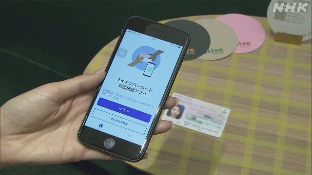 アプリを入れたスマホのカメラで、カードに記載された生年月日などの情報を読み取ったあと、スマホをさらにカードに近づけてかざすと、カードに内蔵されたICチップの情報と照合し、本物かどうかを判別してくれる仕組みです。
