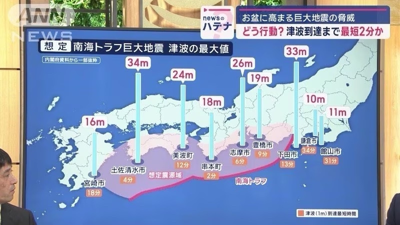 【悲報】南海トラフ、最大想定で4分後に津波34mが到達する模様「防災用品や耐震工事、緊急地震速報ではどうにもならないじゃん・・・」
