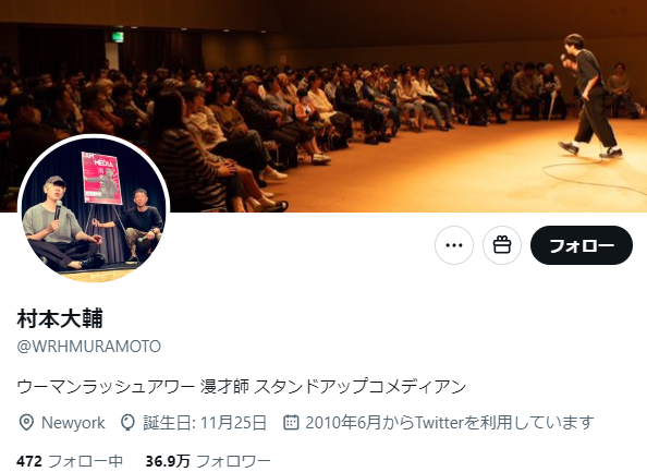 ウーマンラッシュアワー村本大輔(43)が10日までに自身のX(旧ツイッター)を更新。エマニュエル駐日米大使の長崎平和祈念式典の欠席をめぐり、私見をつづった。村本は9日夕の投稿で、エマニュエル氏が出席を見合わせることを伝える一部メディアの記事を添付。タレントのフワちゃんがお笑い芸人やす子に対し不適切投稿をし、謝罪した件をからめ「バカ日本人 いまはフワちゃんよりエマちゃんだろ」とだけ記した。