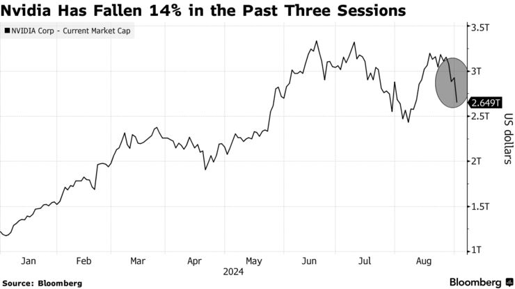 レーバーデー連休明け3日の米株式市場で、AI向け半導体メーカー大手エヌビディア株は9.5%下落し、2789億ドル(約40兆5460億円)が吹き飛んだ。米1銘柄として過去最大となる。