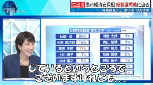 1: 名無し 2024/09/13(金) 09:10:34.58 ID:tbBK+6WH0高市早苗「なんで日テレさんが党員名簿持ってはるんですやろ?」