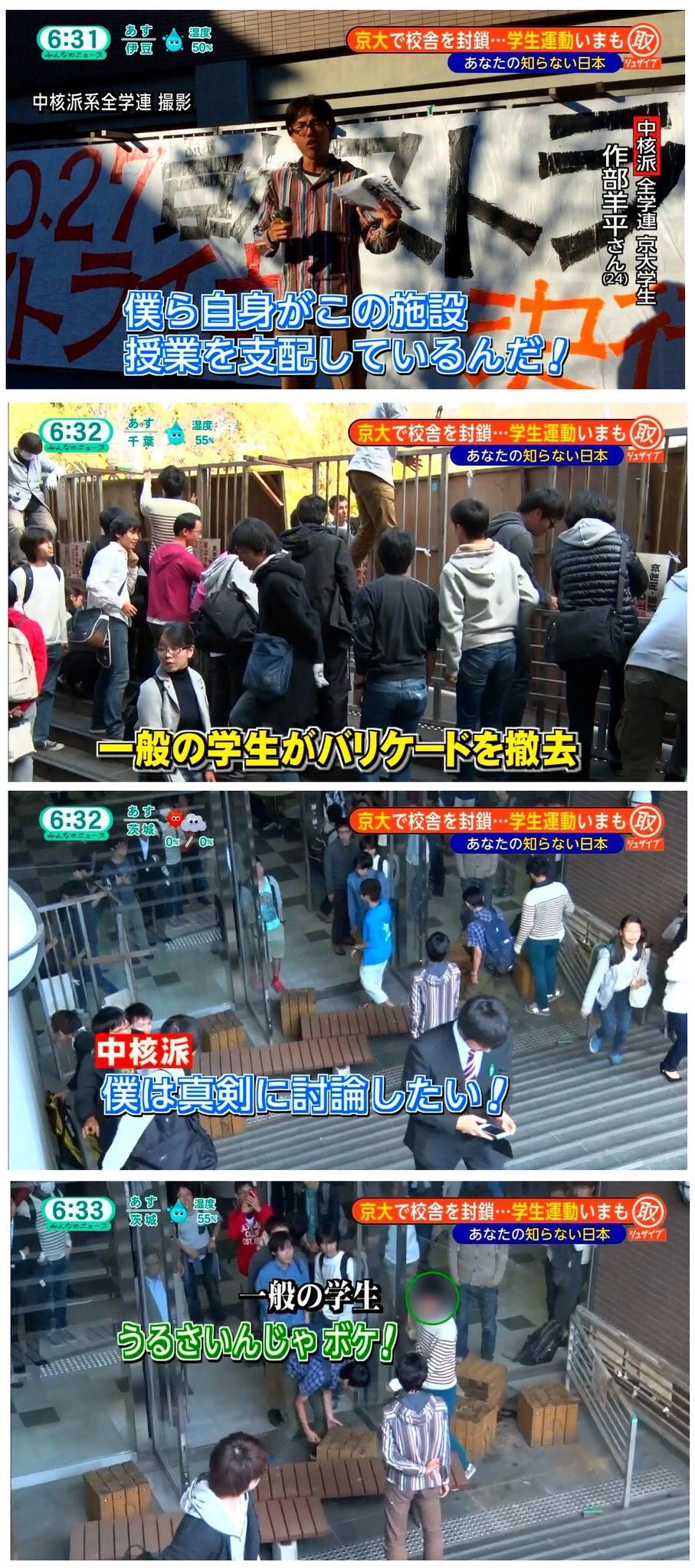 【画像】中核派、京大校舎封鎖の学生運動失敗の辛い過去が掘られる 一般学生がバリケード撤去「うるさいんじゃボケ!」