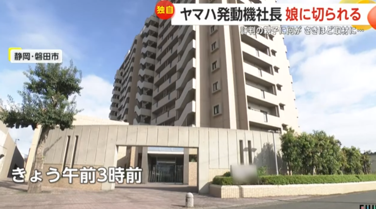 カメラの前で謝罪したのは、静岡・磐田市で同居する娘に左腕を包丁で切り付けられ負傷した、ヤマハ発動機の代表取締役・日高祥博社長(61)です。