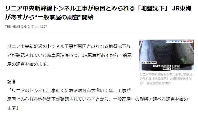 ↓リニア中央新幹線トンネル工事が原因とみられる「地盤沈下」 が発生…JR東海があすから異例の“一般家屋の調査”開始