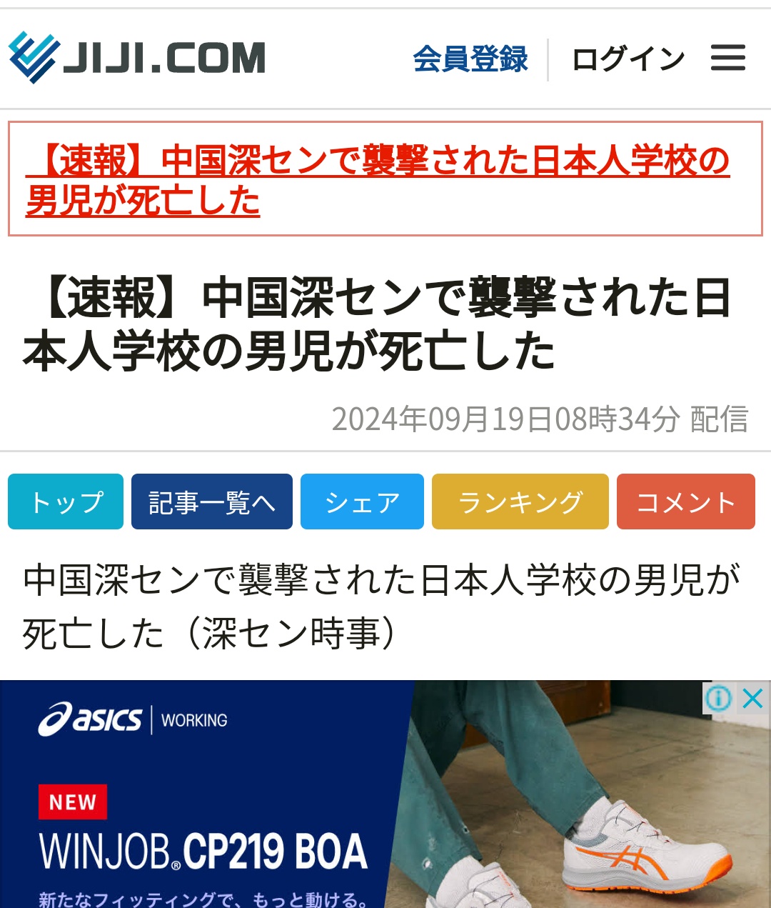 【速報】中国で襲撃された日本人学校の男児(10)が死亡