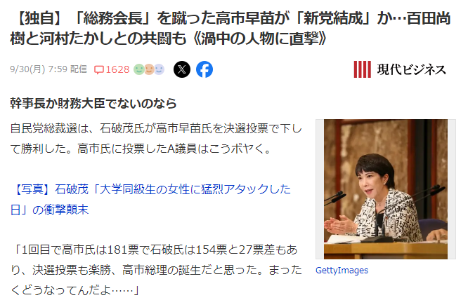 【独自】「総務会長」を蹴った高市早苗が「新党結成」か…百田尚樹と河村たけしとの共闘も《渦中の人物に直撃》