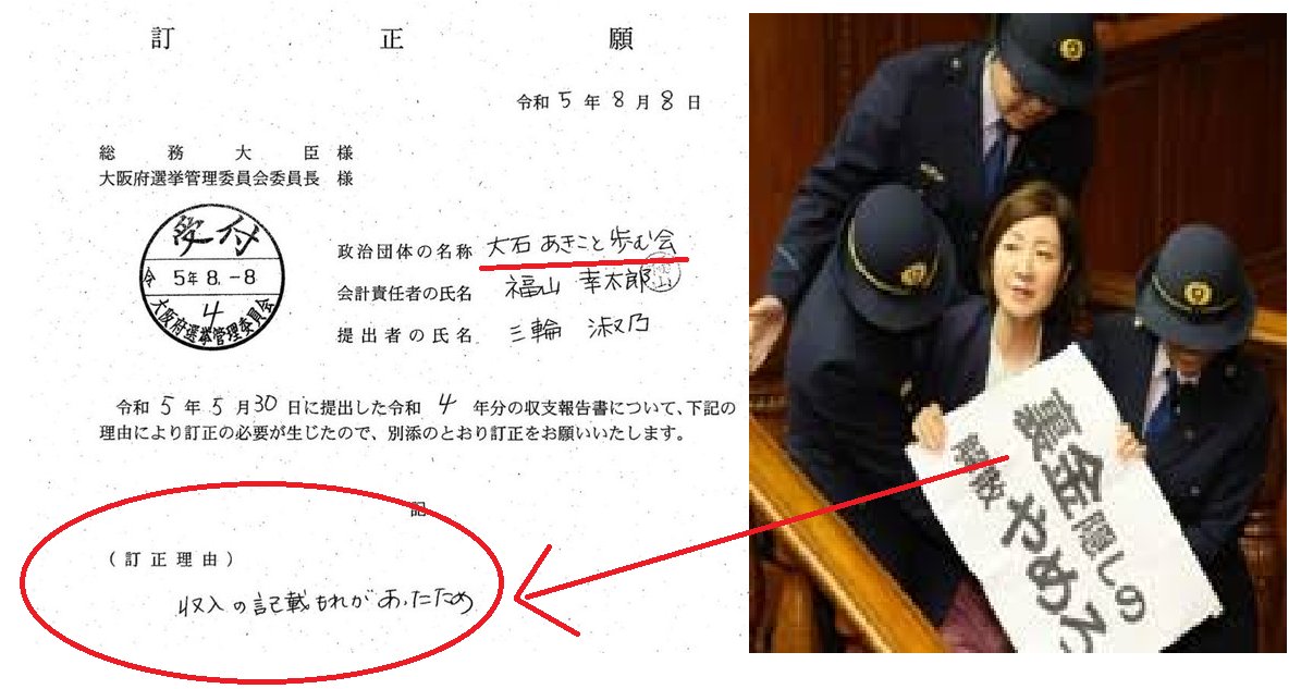 【裏金】 れいわ新選組やらかすw 大石あきこ議員の政治団体が記載漏れかwww