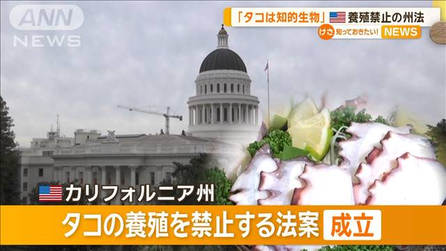 2024年10月10日 ABEMAアメリカ・カリフォルニア州で、「知能が高い」などの理由でタコの養殖を禁止する法律が成立しました。
