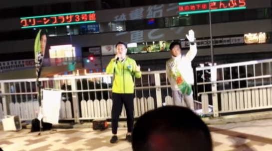 【動画】END維新、維新の演説中に背後のビルに「今までの悪事」を投影する これは妨害に当たるのか